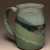 Wheel thrown stoneware mug. Microwave and dishwasher durable. Approximately 5"x 4"