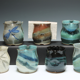 If you use a sponge this is a must have item. Unique styling and extremely useful in keeping your sponge high and dry. The sponge rests on two small points at the bottom of the U and the holder hides the majority of the sponge while keeping it within reach. The holder can be placed in the microwave as well when you want to refresh your sponge. Colors from top left: Dragonfly, Desert, Mountain, 2nd row: Leaf, Beach, Northern Lights, Ocean.